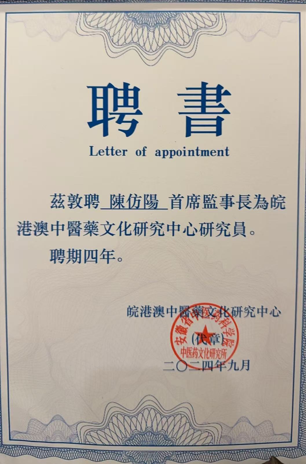 陈仿阳医师,毕业于广州中医大学;香港浸会大学中医药学院中医内科荣誉硕士;南京中医药大学中医临床医学博士。香港注册中医师及中国执业中医师,至港前曾于广东省中山市人民医院中医科任中医门诊及住院部中医师。2021年香港中医届选委,世界中医药学会联合会(香港区)理事,世中联内科专业委员会委员,广东省中山市13届港区政协委员。陈医师擅长中医妇儿科及妊娠期的调理,对妊娠期通过调整身体改善遗传疾病,免疫系统的失调,胎儿发育不良,中医清除胎毒等有独到见解和运用。