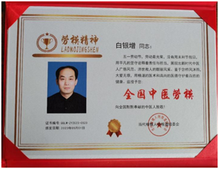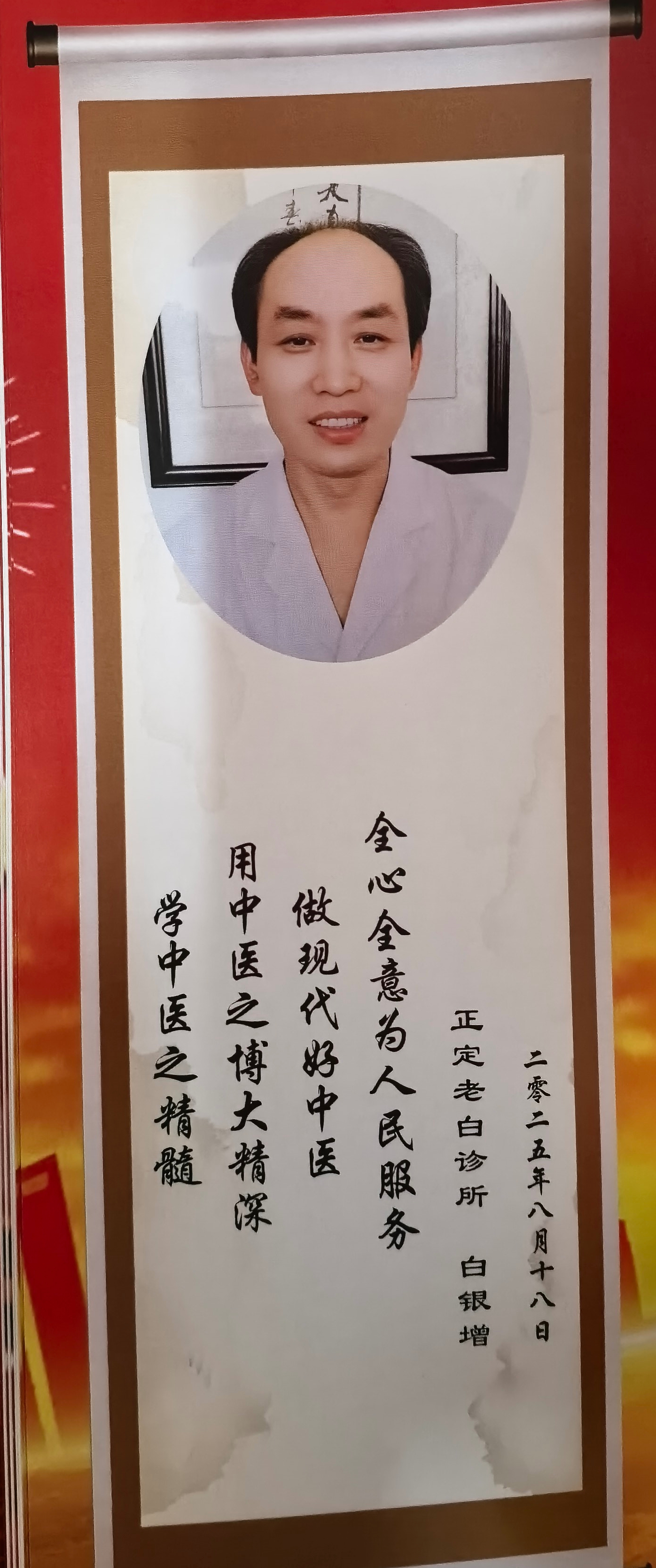 白银增,男,河北正定人。本科学历,高级讲师,中西医结合专业,执业医师,主治医师。从医三十多年。中国囟针协会专家委员会委员,中国民族卫生协会健康委员会专家委员,中国当代名中医称号,2003年被授予正定县文明公民标兵称号,2007年被授予中国优秀医疗工作者称号,2022年被授予行业影响力人物荣誉称号。曾被中央电视台以及多个地方电视台,多家媒体报刊报道过先进事迹。2023年4月被中国中医中药认证中心授予“全国优秀医生”。2023年4月被中央电视台《决策中国栏目》授予国医名师。2023年5月1日被授予“全国中医劳模”。