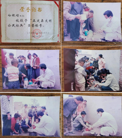 他还热衷公益事业,2003年春季一场突如其来的非典和流感给社会造成不可估量的损失,作为基层医生的白银增,利用自己的所学,无偿给本辖区及周边百姓免费发放中药汤剂,有效地抗击了流感阻止了非典!保当地百姓的平安!大大支持当地防疫工作,其事迹起到很好示范作用,被当地政府评为2003年度文明公民标兵!