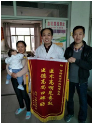 典型病历二:南某某,男,38岁,肾功能衰竭,高血压三期,脑出血后遗症,经过囟针囟骨治疗,患者肾功能完全恢复,高血压稳定,脑子基本恢复,挽救了一家的生活。图为患者感激时的照片。