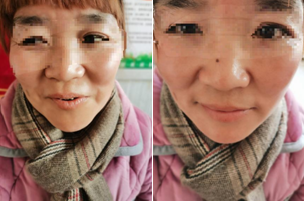 典型病历三:许某某,女,41岁,面神经瘫痪,口眼歪斜。囟针囟骨治疗一次见效,七次痊愈。图为患者康复后的照片。