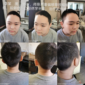 典型病历五:李某某,男,15岁,颅骨严重偏移导致抑郁症,孤僻症。休学已经半年,通过整颅骨治疗,颅骨基本恢复方正,抑郁症、孤僻症消失,主动要求上学,已经恢复正常学习生活。